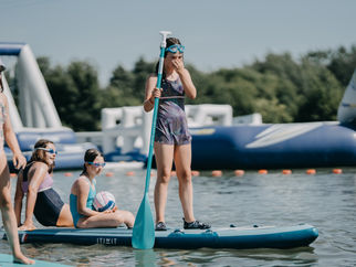 Aktywności na wodnym torze przeszkód – pełne emocji przejścia przez wodne wyzwania.